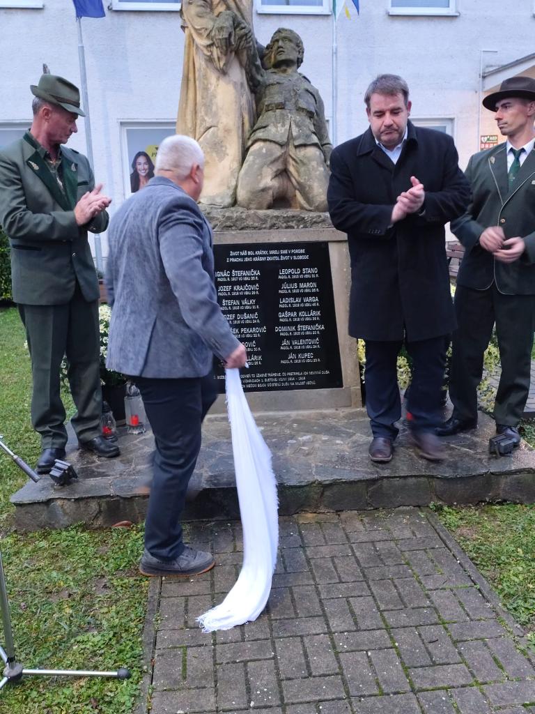 Pietna spomienka na padlých vojakov v 1. sv. vojne a slávnostné odhalenie novej pamätnej tabule za účasti ZO-SZPB, starostu obce, občanov a hostí. Slávnostného aktu sa zúčastnili zástupca TTSK Mgr. Rastislav Mráz, kňaz Plk. PaedDr. Jozef Paluba a miestny pán farár František Mrkva.