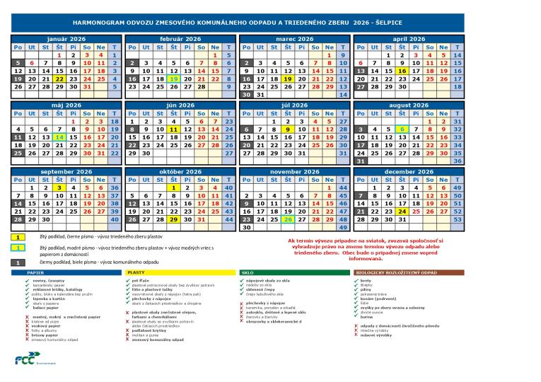 Harmonogram odvozu odpadu 2026