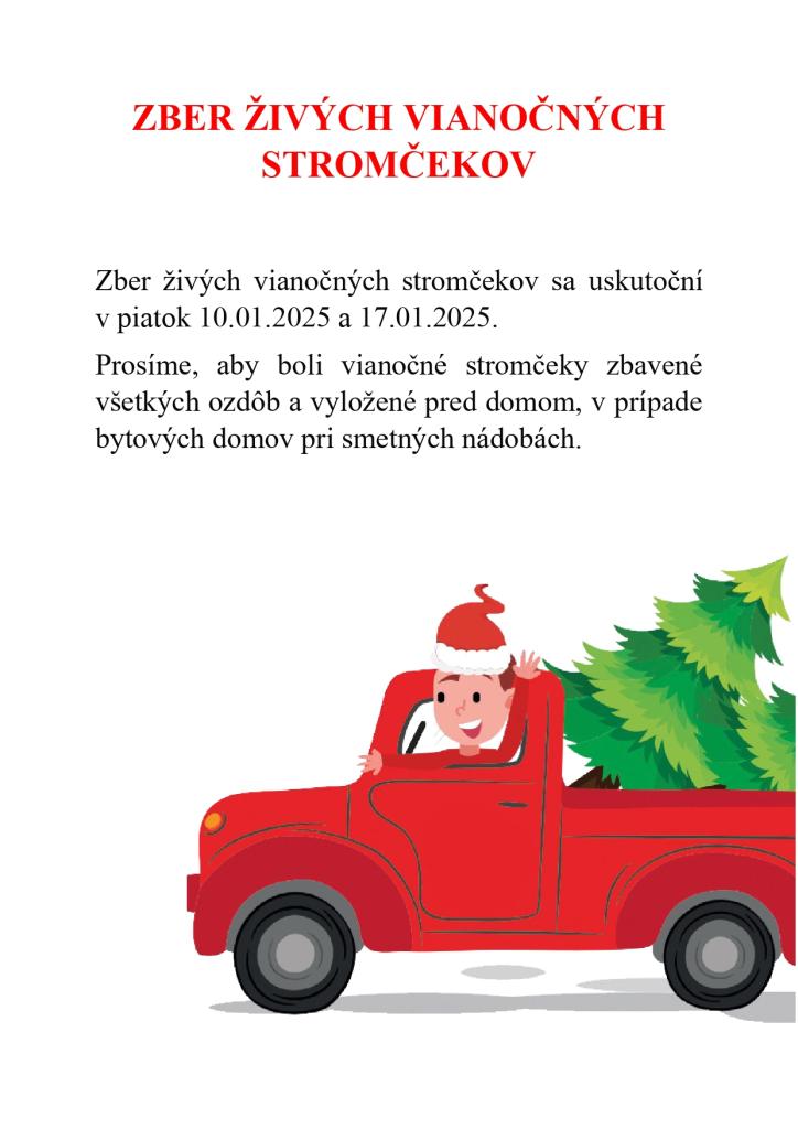 Zber živých vianočných stromčekov sa uskutoční v piatok 10.01.2025 a 17.01.2025.